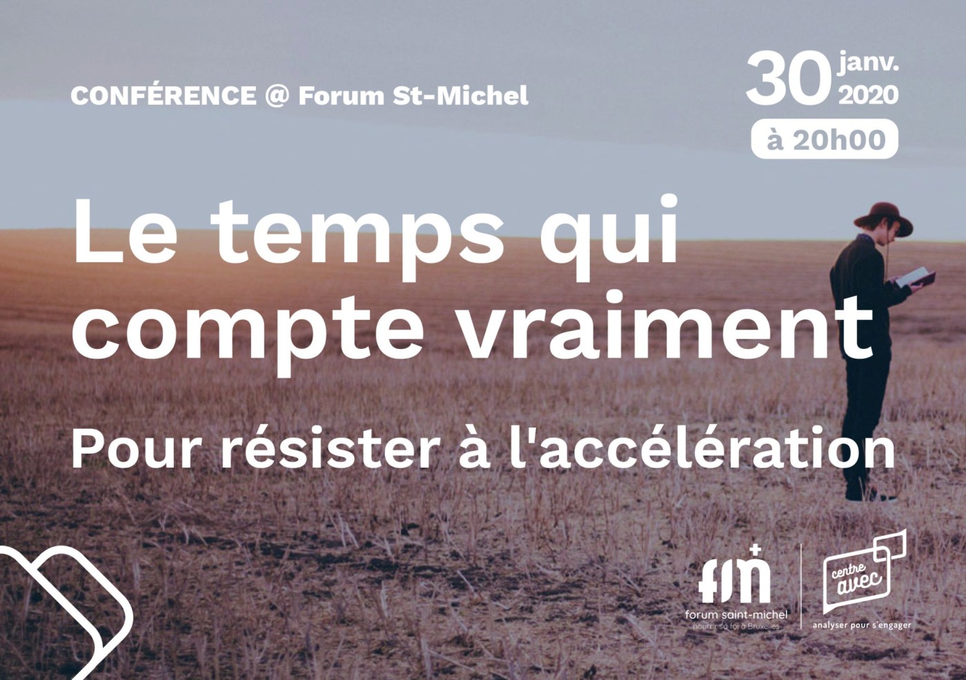 Le Centre Avec et le Forum St Michel organise ce jeudi 30 janvier à une conférence avec Dominique Collin sur le sujet « L’accélération : peut-on lui résister ? ». Ne serait-il pas possible de trouver un rapport plus ajusté au temps ? Le vivre comme un… présent ?