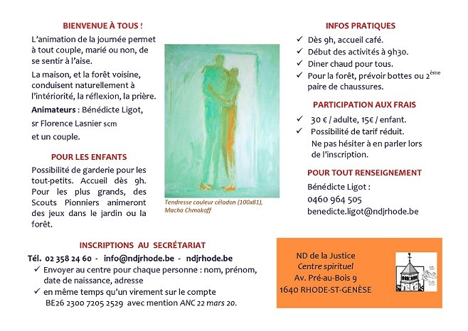 - Lieu: Centre spirituel Notre-Dame de la Justice – Avenue Pré-au-Bois, 9 – 1640 Rhode Saint Genèse
