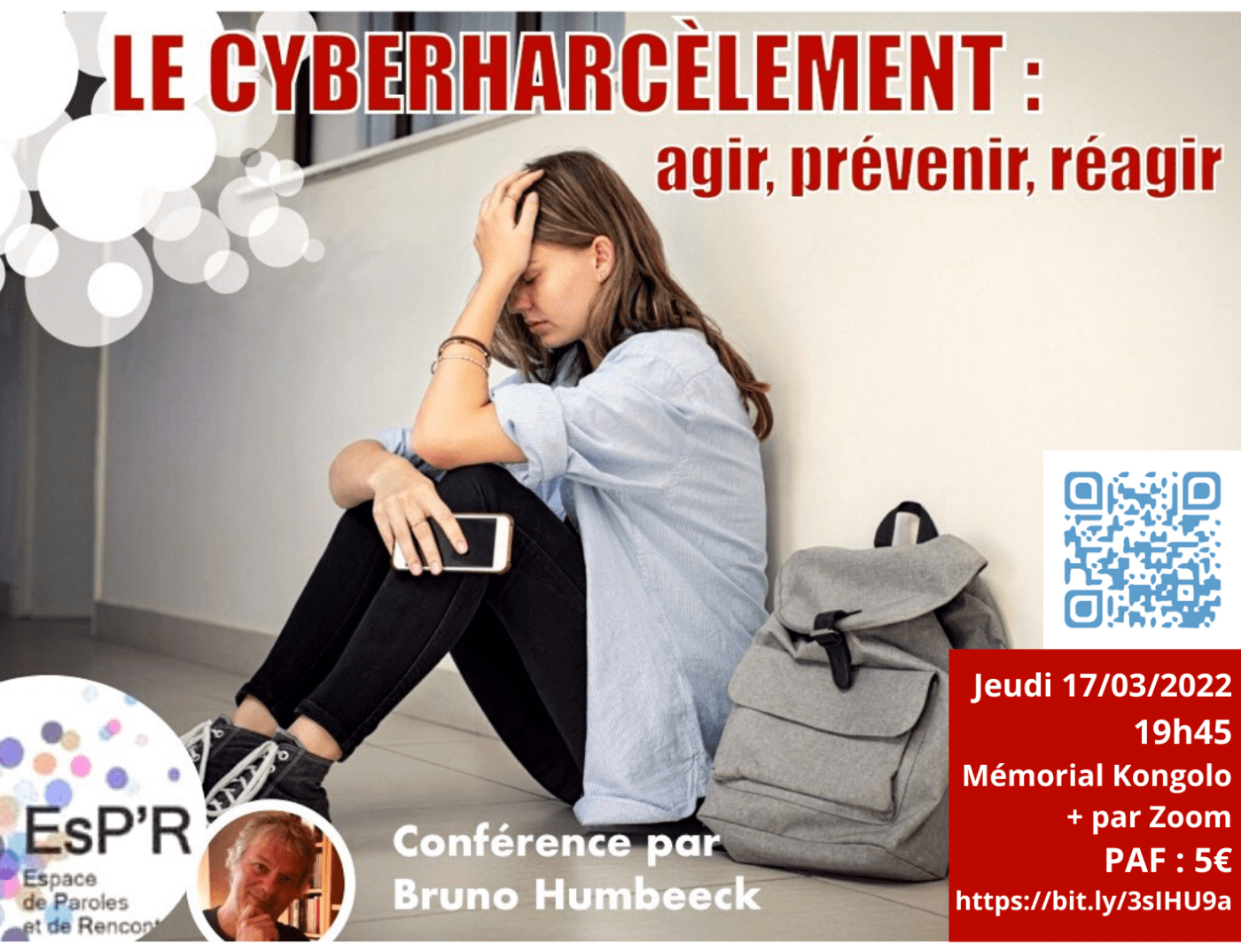 Le cyberharcèlement, voilà un thème qui peut toucher tout parent que nous sommes. L’Unité Pastorale de Chastre organise une conférence sur sujet ouverte à tous. Cette conférence sera donnée le jeudi 17 mars 2022 par le docteur Bruno Humbeek dans le cadre des conférences EsP’R.