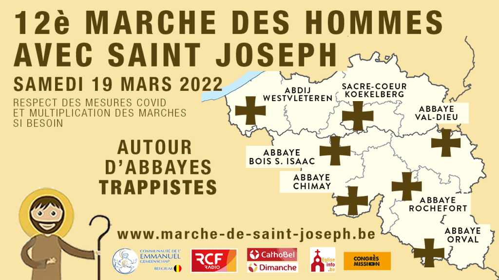 La 12ème marche des hommes avec saint Joseph aura lieu le samedi 19 mars 2022 par petits groupes autour d’abbayes (dont des trappistes) et de la basilique de Koekelberg.