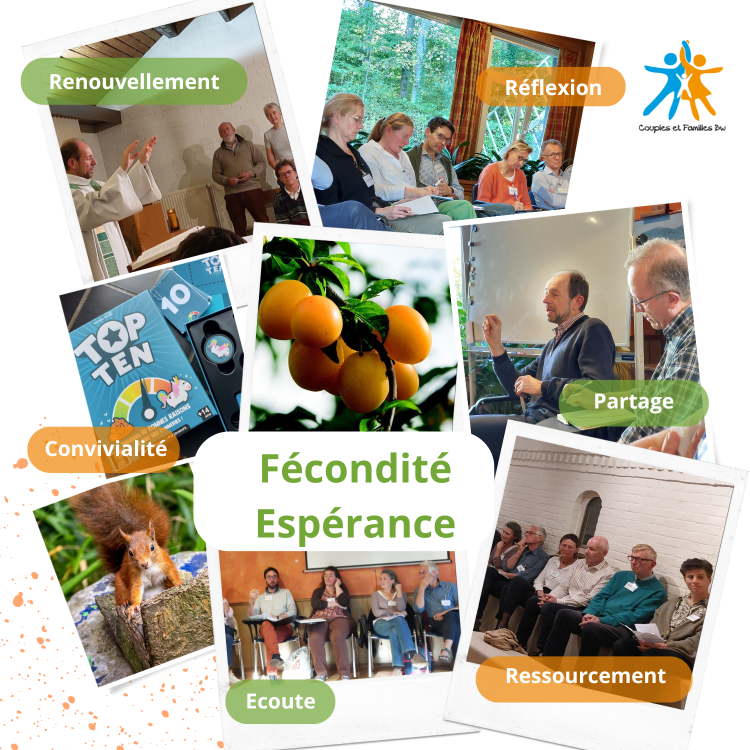 Le chanoine Eric Mattheeuws Eric, invité pour aborder le thème du weekend, a rappelé combien, pour le chrétien, l’espérance est liée à la confiance et s’appuie sur l’expérience d’une présence et de la rencontre avec le Dieu vivant. Ayant été créé à l’image de ce Dieu créateur, l’être humain a reçu la vocation de ressembler à Dieu ! Le couple est, dès lors, invité à devenir cocréateur. Sa fécondité est en lien direct avec l’essence même de la vie humaine sur terre. « Mettre en œuvre cette vocation, c’est faire œuvre d’espérance ».