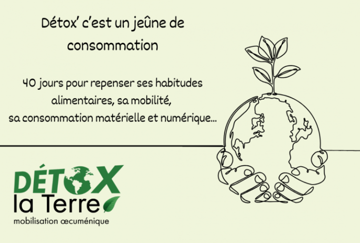 Détox la Terre nous trace un itinéraire de quête intérieure pour plus de cohérence et d’engagement envers la Création et le Créateur. Le parcours Détox la Terre est un temps de retraite dans le quotidien. C’est un temps de jeûne pour se confronter ensemble et devant Dieu à la crise écologique, écouter nos ressentis face aux réalités qu’elle engendre, se désencombrer de ce qui nous intoxique et revenir à la source de la foi chrétienne. Tout cela pour activer des changements en soi et autour de soi, dans une perspective de joyeuse sobriété.