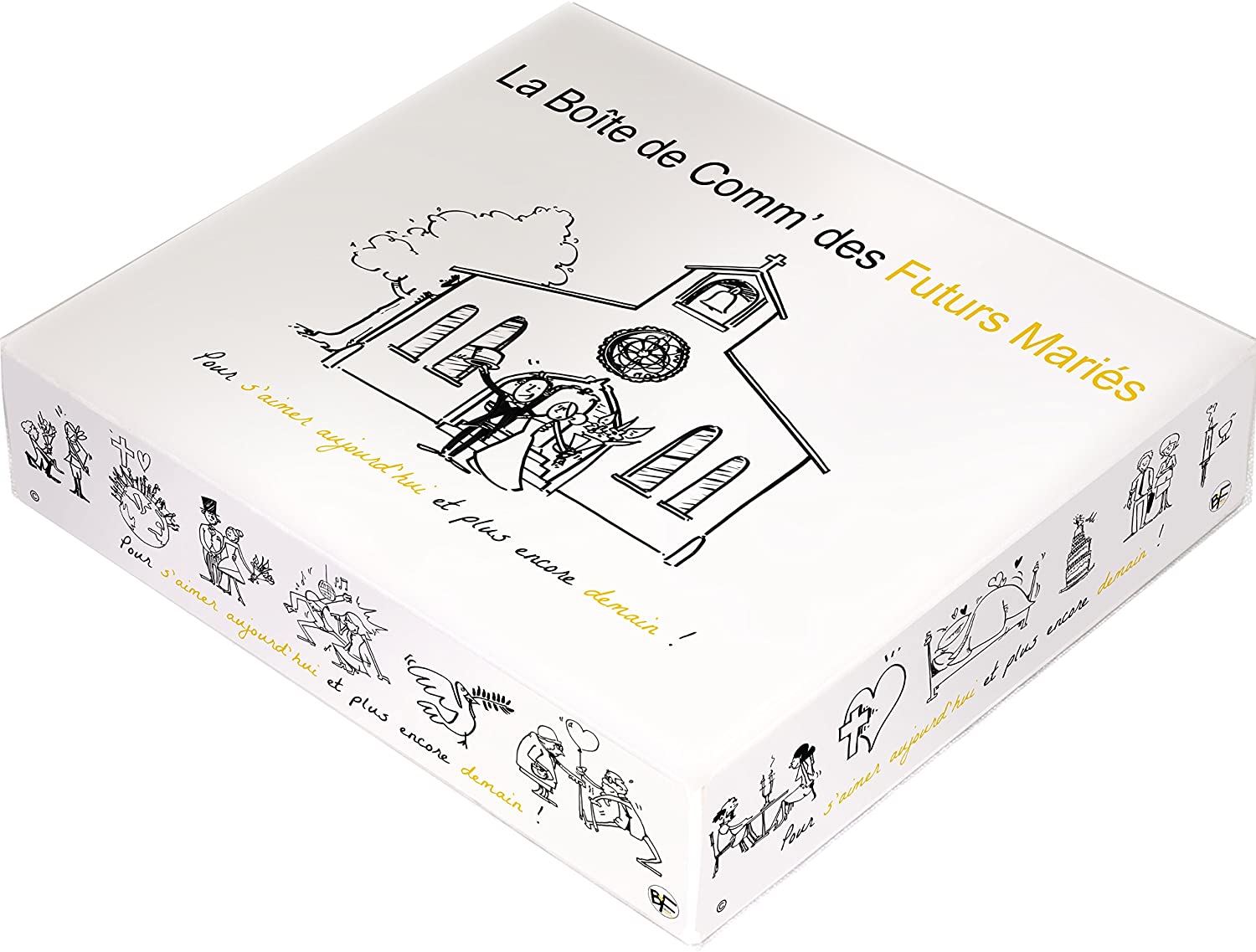 Félicitations, vous avez décidé de vous unir et vous avez choisi de vous marier à l’église ! Un tel engagement, dans lequel chacun promet de se donner totalement et pour la vie à son conjoint sous le regard bienveillant de Dieu, cela se prépare, non ? La Boîte de Comm’ des Futurs Mariés est un outil unique : sous forme de jeu, elle va vous faire parler et rire en prenant soin de votre couple, aujourd’hui et au cours de vos premières années de mariage. Le principe est simple : – Retrouvez-vous en tête-à-tête autour d’un verre et piochez une carte au hasard. – Répondez à un quiz sur une multitude de sujets, légers ou profonds, sur l’engagement, l’amour, la foi et la vie quotidienne (gages et récompenses à la clef). – Prenez un temps de dialogue pour aller plus loin. Cette boîte contient : 52 cartes, 2 crayons, 1 carnet réponses et 1 règle du jeu. Intimité, joie, dialogue et surtout (re)découverte de l’autre et de soi en perspective.